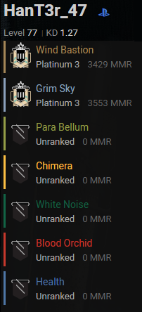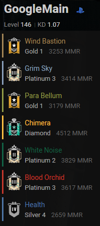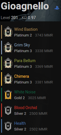 Questi sono i gradi dei giocatori presenti del Team Alpha